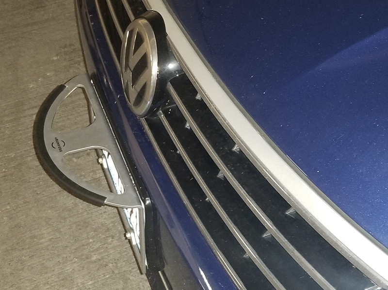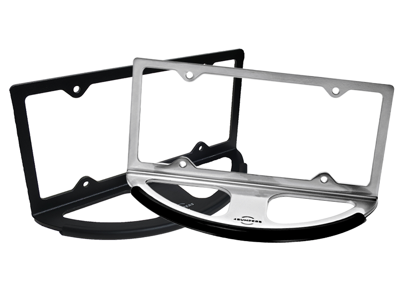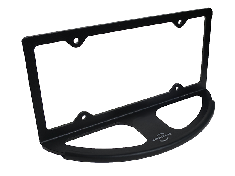 Solid steel license plate frame with a singular horizontal 4-inch rounded protrusion and center brace makes 4Bumpers Prime ideal parking bumper protection where the license plate attachment area is either flush or recessed in your bumper.